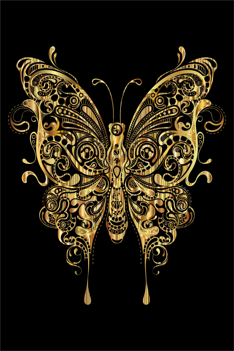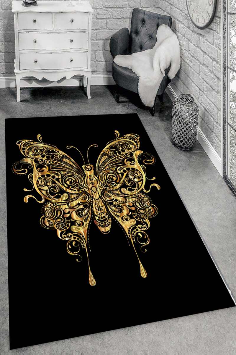 Altın Yaldızlı Kelebek Desenli Dijital Baskılı Halı