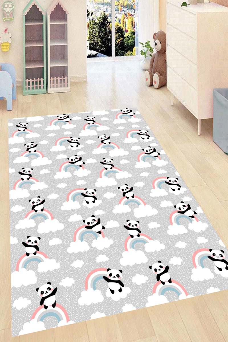 Gökkuşağında Pandalar Desenli Dijital Baskılı Halı