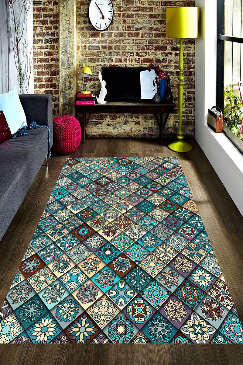 İslamik Mermer Desenleri Dijital Baskılı Halı Örtüsü HRC1999
