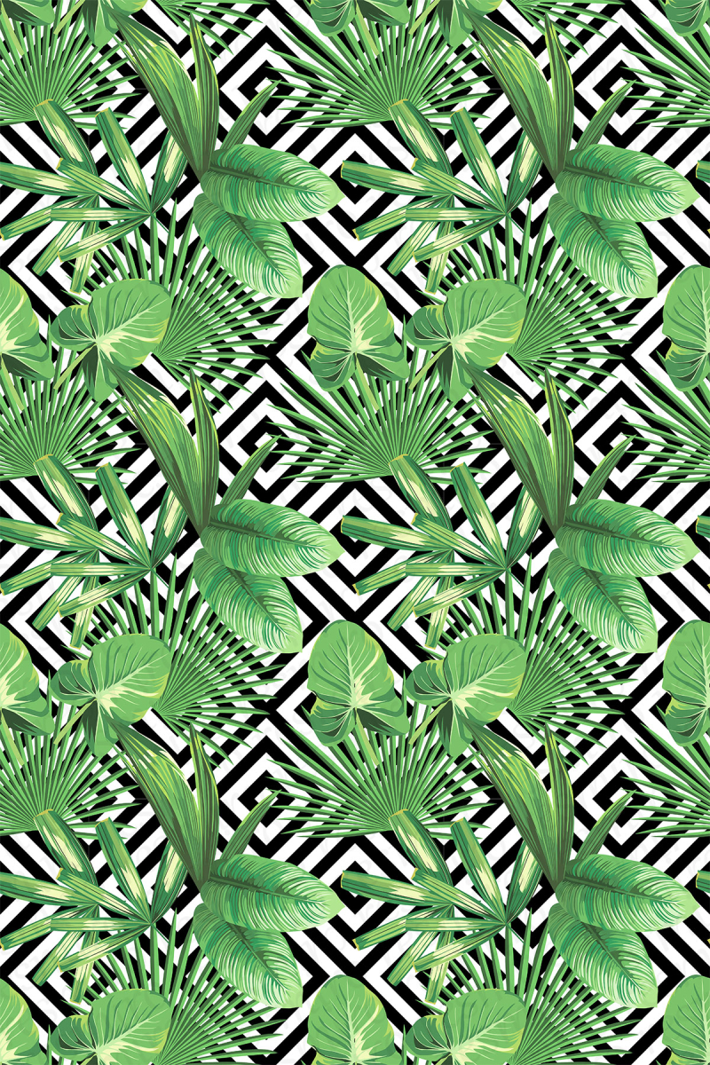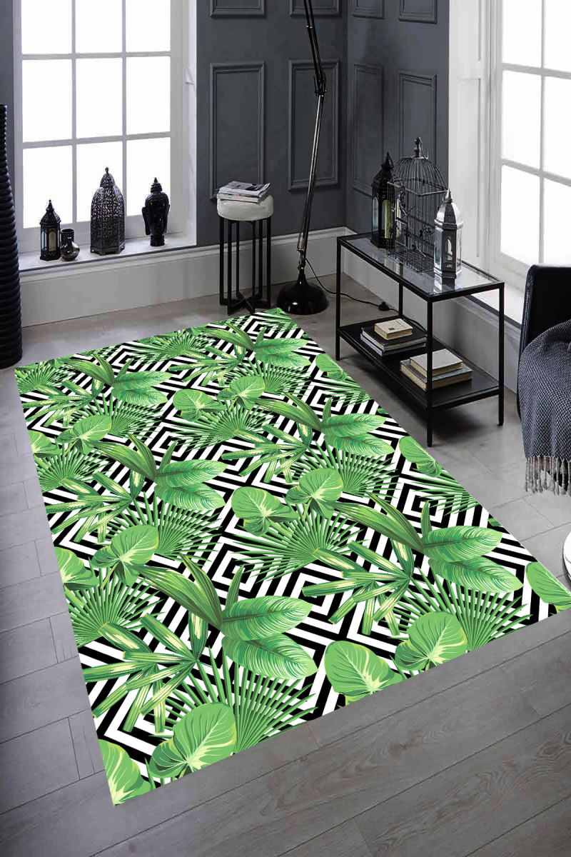 Palmiye Yaprak Desenli Dijital Baskılı Halı
